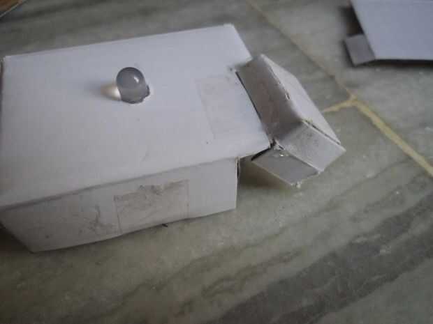 Corte un trozo pequeño de cartulina con sus dimensiones y dobleces como se muestra en ella y luego cinta adhesiva alrededor de la caja principal del engranaje.