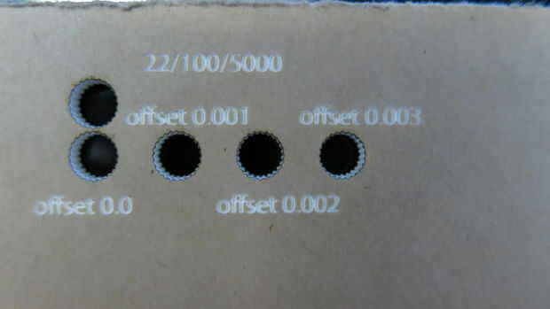 Para comprobar mi hipótesis, corté varias tiras de prueba en diferentes desplazamientos: 0.002 (offset asumida), 0.001 (un poco más estricto) y 0.003 (ligeramente más). Después de cortar esta pieza de prueba he intentado presionar la pieza sobre una spline de servo. Lo que se sabe - el desplazamiento de spline 0.002 era un ajuste perfecto.