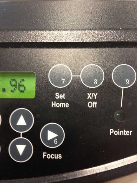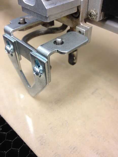 Coloque el acrílico en el láser y la atención. A la fuerza el empuje el botón de enfoque del láser en el panel frontal. Usando el para arriba y abajo flechas para mover la cama hacia arriba y hacia abajo para láser de enfoque. Quitar el indicador de enfoque y oprima reset para enviar el hogar de la máquina.