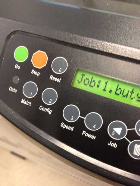 En panel frontal del láser golpeó "ir" y ver el láser ir a trabajar. Una vez que el láser está hecho abierto la tapa y mira a ver las diferentes profundidades de corte láser.