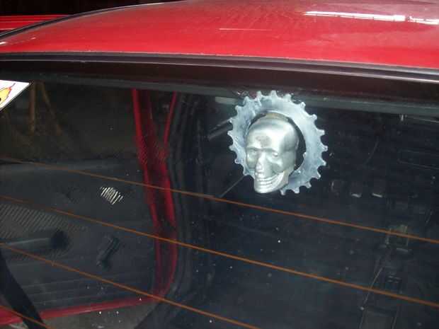 Encuentran un cráneo de un taladro de unos agujeros cuando los lasers donde colocaron, luego soldar los leds a un cable y conect en las luces de freno y luces de reversa.