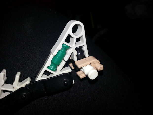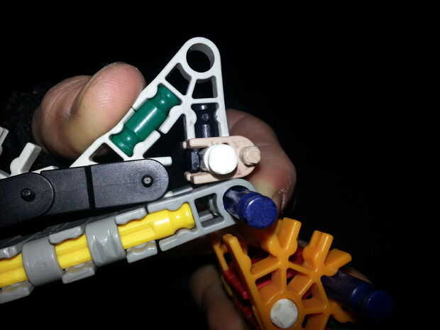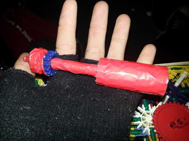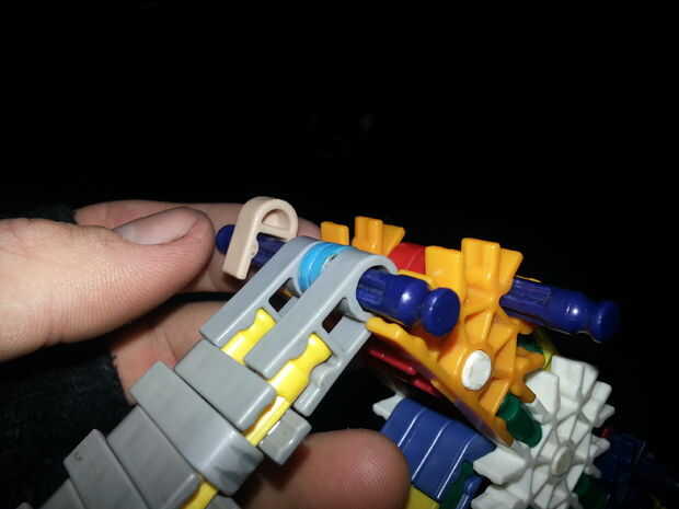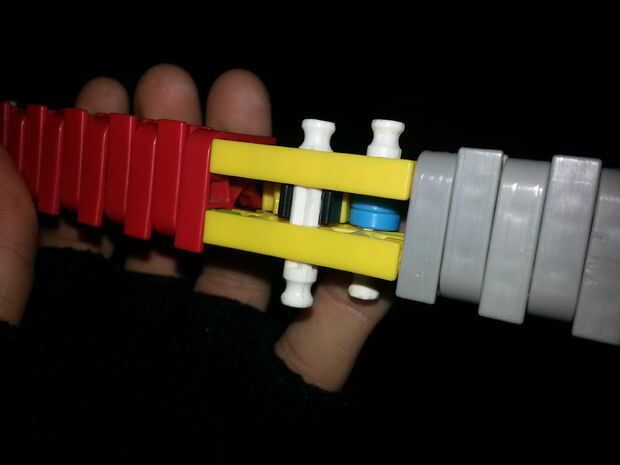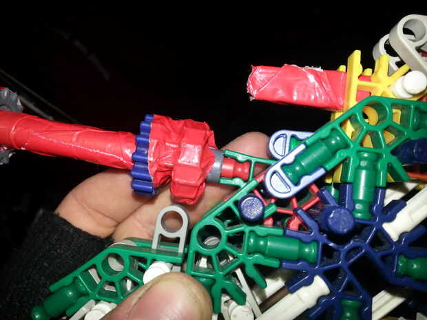 Foto 33) hacer el falso barril accesorio, es sólo un par de pequeños engranajes envuelto en cinta y creo que hay unos separadores entre ellos.