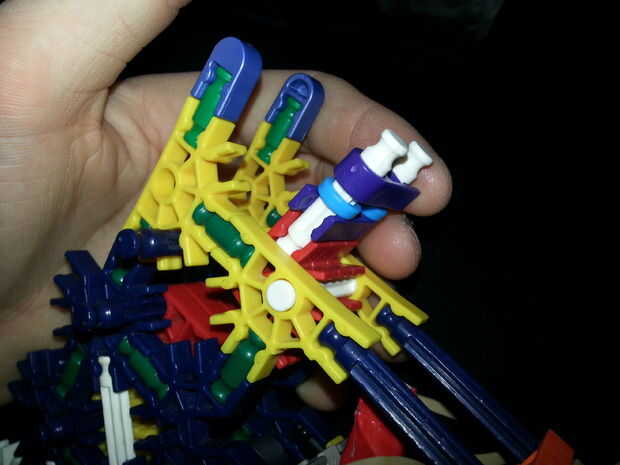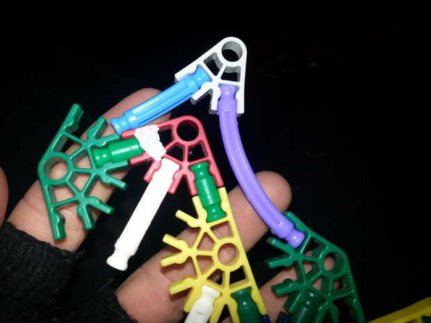 Foto 6) Coloque el mango como así y sí, los conectores tan sólo sentarse en los agujeros, el conector naranja que les ayuda a permanecer en el lugar.