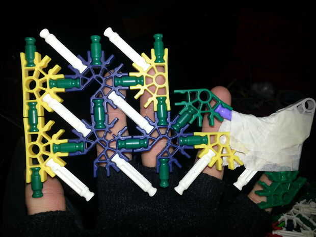 Foto 4) la parte inferior del mango, y si usted mira de cerca se verá que las varillas de longitud blanco flex y están tocando el verde conector, que se supone debe para suceder, no se preocupe.