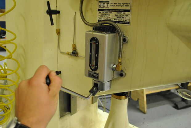 Este procedimiento de engrase es el que es el más simple, que es conveniente ya que es la que hay que hacer más a menudo. Cada hora durante la operación el molino el usuario debe utilizar el sistema paso a paso que está instalado. Cuando se tira la bomba, distribuirá aceite a los ejes X e Y, como el Z. Cuando yo estaba en primer lugar indique esto, me dijeron que el molino en cada dirección después de tirar la bomba en movimiento aseguraría la cobertura adecuada en el sistema. TechShop San Jose, el aceite de este depósito es comprobado y rellenado por el personal. Si pasa a ser vacía, con mucho gusto será rellenarlo para usted.
