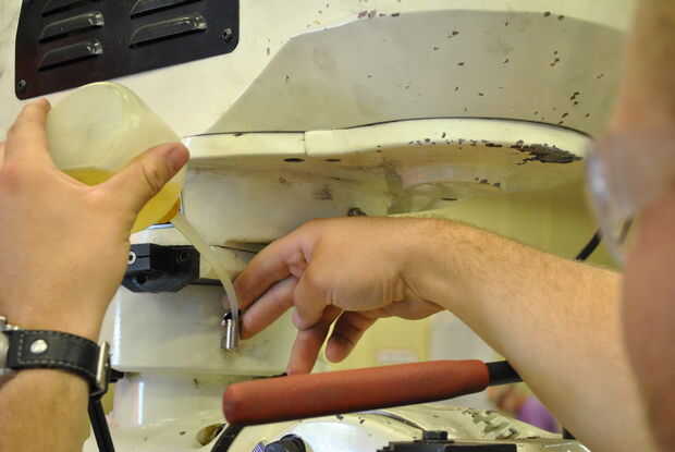 Mientras que el eje está en a una velocidad moderada, continuamente llene el depósito con aceite del huso ligero DTE. Al final de este proceso, debe ser aceite que se escapa a través de y en las maneras del molino (esto indica que el aceite ha alcanzado toda la zona). No hay manera realmente más lubricar el husillo, es realmente sólo una cuestión de cuánto se desperdicia en el proceso.