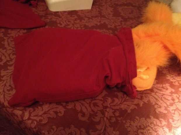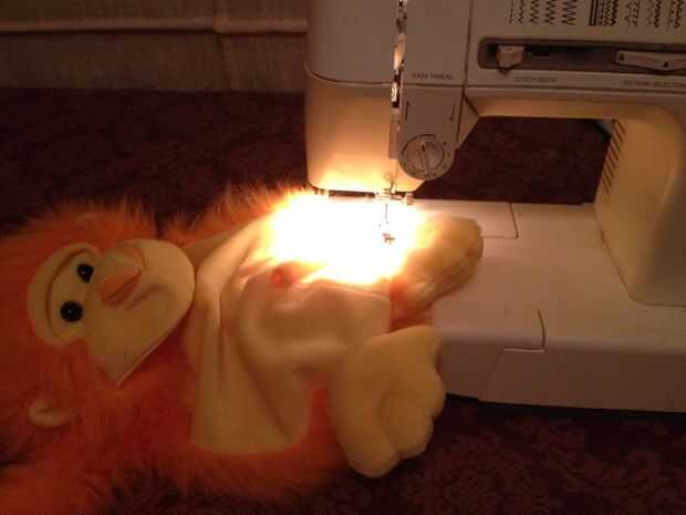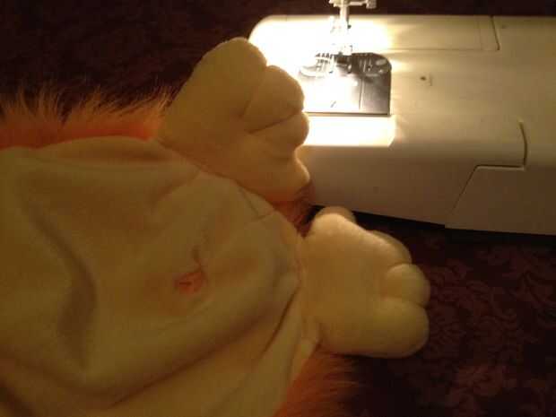 Me rompió la camisa y la forma más elemental, cosida cierra, dándole espacio para estirarse dentro del gorila para que ellos no perder ningún espacio. Luego cosí cuidadosamente la parte superior del forro para el cuello del gorila quitando parte de la máquina de coser que permite un más apretado-coser-espacio. Generalmente no hay ninguna ciencia en lo que hago, solo juzgo ver si se ajusta o trabajo y una vez decidido... cosen! Una vez hecho el revestimiento, voltear la espalda animal relleno normal y usted tendrá su propio forro interior!