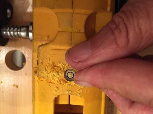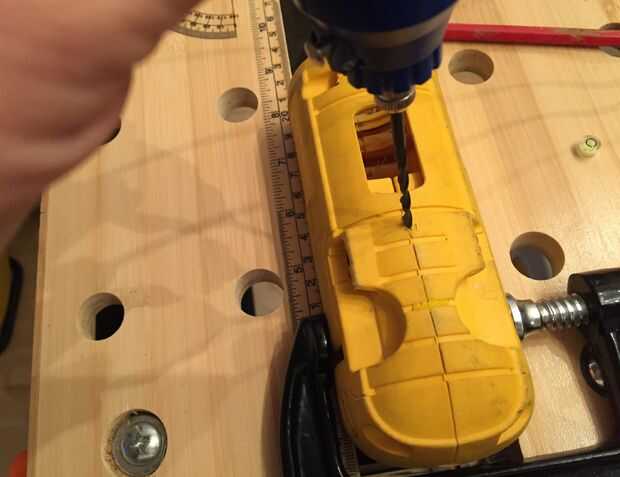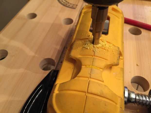 Primero un agujero piloto y luego el agujero del tamaño correcto fue perforado con una broca de paso para perforar un agujero de 8mm (otros niveles pueden variar en tamaño de burbuja).