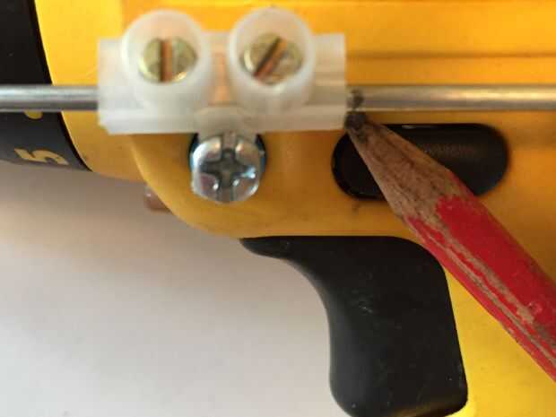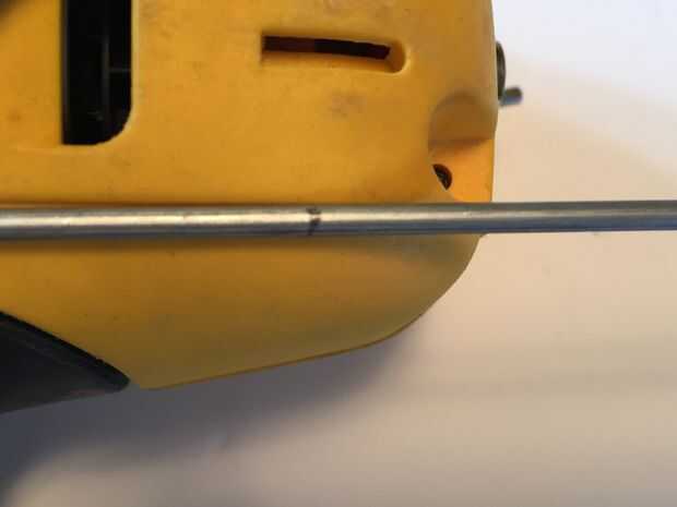 Corte la longitud de la barra al máximo que pude y todavía tener que permanecer dentro de la longitud del cuerpo del taladro. Era evitar el potencial para ser penetra en el ojo durante su uso.