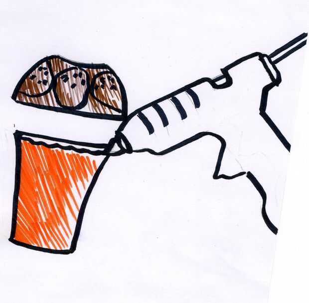 Tomar la otra taza y pegar la pieza de la vasija con la pistola de pegamento en la parte superior de la Copa.