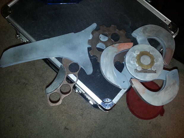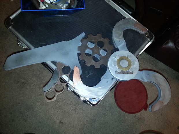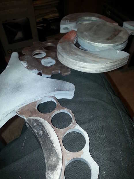 Entonces usé rub y buff (conseguido mucho en 12 de ellos para como $.28 en amazon me dieron una tarjeta de regalo de $30 para firmar para arriba para su tarjeta de crédito) había lijado más quería hacer en él, pero no pude encontrar mi dremel para redondear los bordes. También he añadido una placa con mi nombre grabado en ella a la parte frontal del disco que contiene los ganchos luego le añadió la parte decorativa