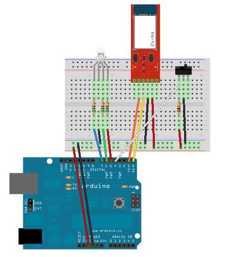 Utilice resistencias de 560 Ohm para conectar el LED a los pines de Arduino.  Conecte las clavijas rojo, verde y azul LED para el Arduino Pin 5, 6 y 7 (en ese orden). Conectar la clavija de tierra de LED en el Arduino GND.
