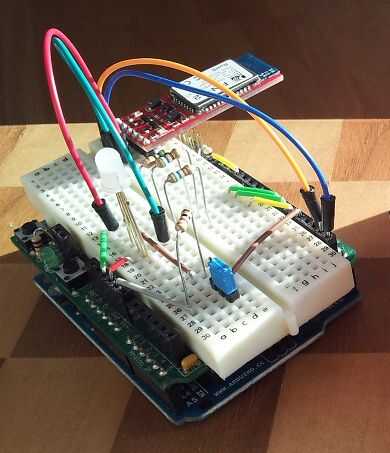 Nota: la forma más sencilla de conectar el BlueSmirf breakout Junta es conectarlo directamente a la RX (Pin0) y TX (Pin1) de Arduino.  De esta forma que podemos utilizar directamente los comandos serie de Arduino.