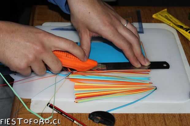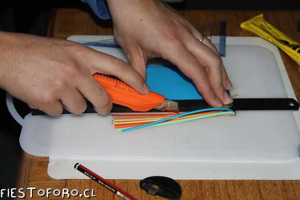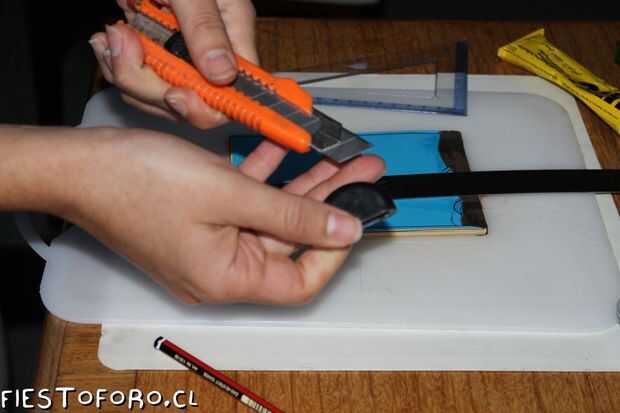Después de la espera de que el pegamento se endurezca, ahora puede recortar los bordes con un cuchillo. En primer lugar, la hoja afilada mediante la eliminación de una sección. Para un resultado uniforme, tienes que hacer varias pasadas o cortes, no presionar duro y manteniendo un pulso constante. Intente mantener la cuchilla en un ángulo de 90° cuando se corta.