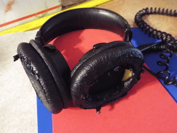Bueno, aquí está mi set de Sony MDR-V6 de. La almohadilla de la cubierta es formar escamas de uso pesado y edad. Tiempo para reemplazar las almohadillas al comprar un juego nuevo pero ¿por qué no hacerlos?
