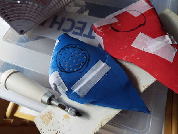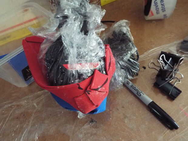 Pegué en algunos pedazos de tela de desecho para suavizar las aristas o protuberancias. También reforzarán los lugares donde el empalme de la cola puede fallar si flexiona el pegamento seco de la espuma.