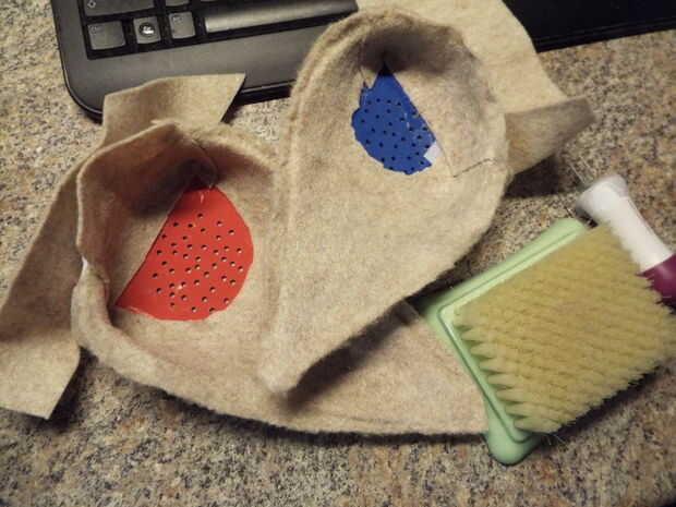 Puesto que tenemos que juntar los bordes de las dos piezas de oído interno y oído externo fieltro cubre, nos harán sentir juntos para crear una mirada perfecta. Trabajos de fieltro tomando una aguja especial tiene golpes en el eje de la aguja para atrapar fibras como se inserta en la tela. Con varias pasadas, las fibras del haz entrelazadas para crear una masa afieltrada. Al azar apuñalar el borde sobre un cepillo bloque de fieltro o espuma. Extraer el bloque de fieltro a menudo al cepillo hacia abajo y consolidar las fibras sueltas. Ir sobre el borde entero frente y atrás que sentía. No intente jab la parte de espuma por debajo el fieltro ya que puede romperse la aguja.