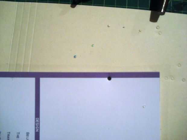 * Nota * Si usted está haciendo una cubierta con visible remaches, usted puede hacer los agujeros en que así añadiendo el la parte inferior de la pila. Si estás haciendo esto, omita el paso siguiente.
