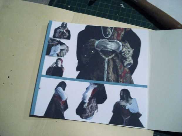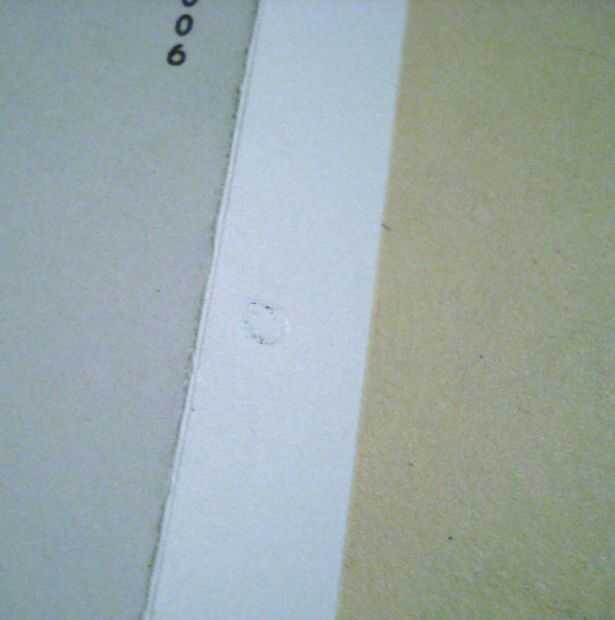 Eres interiores están listos para ser ensamblados pero todavía necesita hacer agujeros en la cubierta. Para colocar estos agujeros correctamente, retire las hojas superior e inferior de la pila de entrañas. Coloque la sábana bajera para que los agujeros que has hecho en él son sobre el plegado más 1/2" que realizó durante la preparación y para que el resto de la hoja encuentra sólo cómo usted quisiera que cuando todo el asunto. Tome usted sacador del agujero y presione en los orificios lo suficientemente duros para que deja una marca en el material de la cubierta. No use su martillo, sólo harás un agujero. Repita con la tapa y la hoja superior.