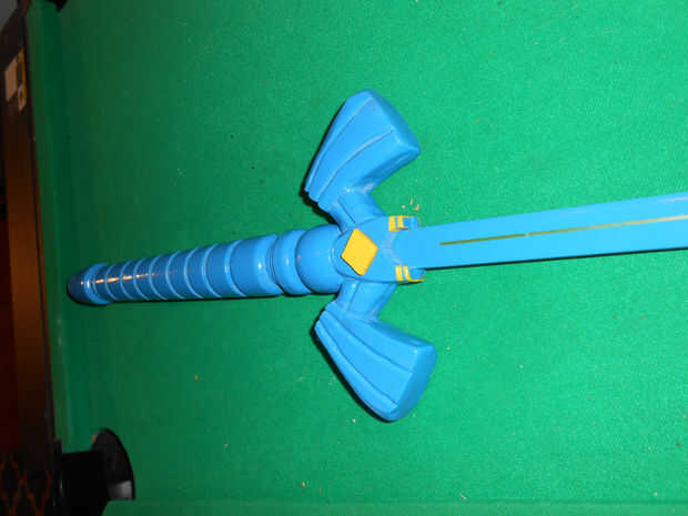 Dio la espada de 3 capas de pintura azul. Luego pintado a mano un poco de líneas amarillo así como agregando el diamante. El diamante es simplemente un pedazo de chatarra cortada y pintada de amarillo. Un marcador permanente oro fue utilizado para dibujar la línea por el centro de la espada. Espero que hayas disfrutado este instructable tanto como yo disfruté haciéndolo.