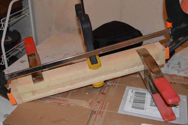 Las tres piezas se pegan entonces así como dos extremos de chatarra que se cortará después de ser dado vuelta en el torno.