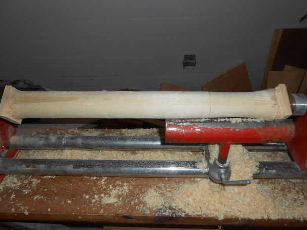 El pegamento para arriba es centrado en el torno y luego girar hacia una forma de "espiga". Se agregan unas cuantas marcas de lápiz para puntos de referencia.