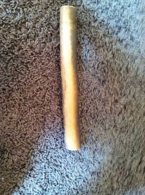 Necesitas: cartón, tubo de PVC, una pingpon bola, un tablón de madera 2 pulgadas de ancho y 33 pulgadas de largo, una sierra, pegamento caliente pistola pintura azul y oro