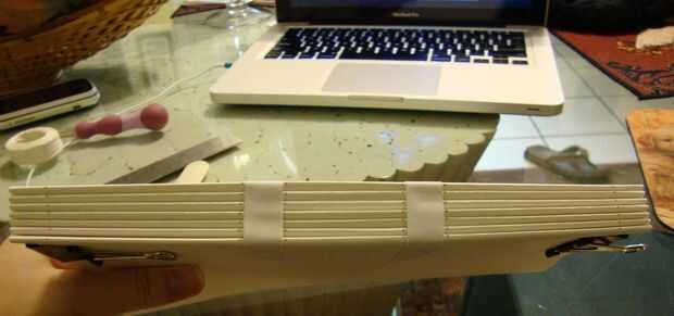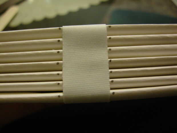 La cinta tiene dos propósitos. Sostiene las firmas juntos mientras que usted está de coserles, y también aumenta la integridad estructural de la columna vertebral de su libro.