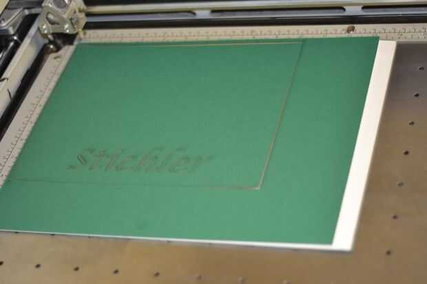 Ajustes para cortar son velocidad del 30%, 40% de potencia y frecuencia de 500 MHz. El láser cortará a través de la estera en un corte.
