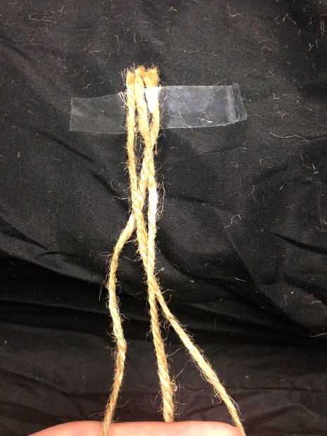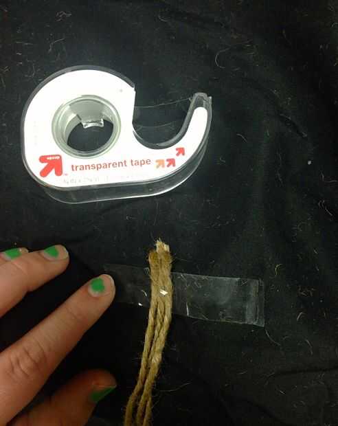 Utilice una pulgada de cinta para mantener la cuerda en su lugar en la parte superior.
