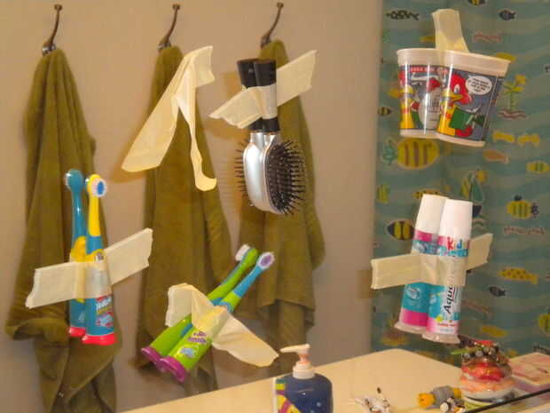 Cinta tantos artículos de higiene personal que los niños a utilizar por la mañana en el espejo en su cuarto de baño. No te preocupes, lo más probable es que si tienen que usar el baño en medio de la noche, nunca notará.