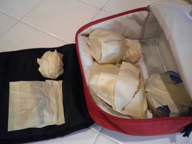 hice este bolso para mi esposa de caja de sus galletas favoritas. Es esencialmente un monedero de la cinta del conducto pero hace que la envoltura de plástico para una bolsa de mejor aspecto. Mi inspiración viene de una empresa que me gusta mucho www