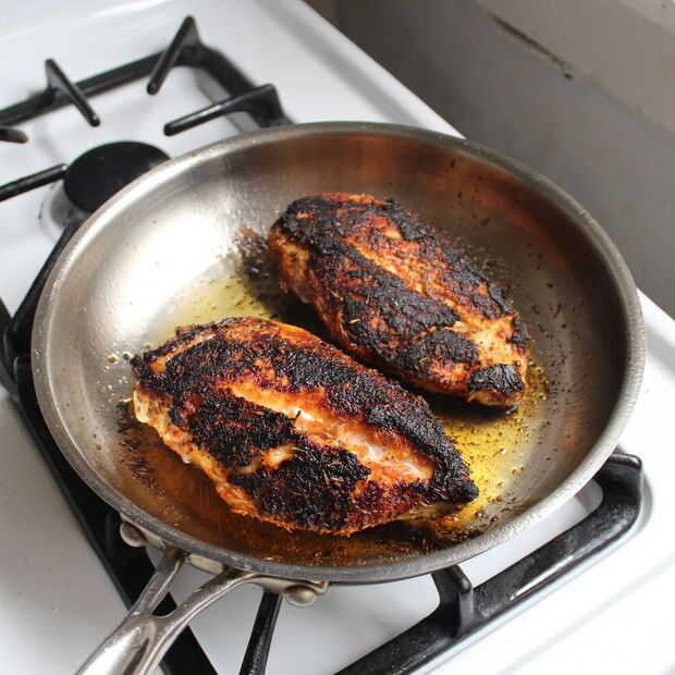 Por favor tenga en cuenta que no te recomiendo cocinar pollo ennegrecido de esta manera a menos que esté dispuesto a limpiar una estufa muy sucia luego. También, asegúrese de que usted tiene un extractor o pusieras un detector de humo. : D