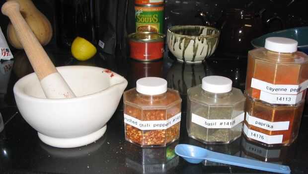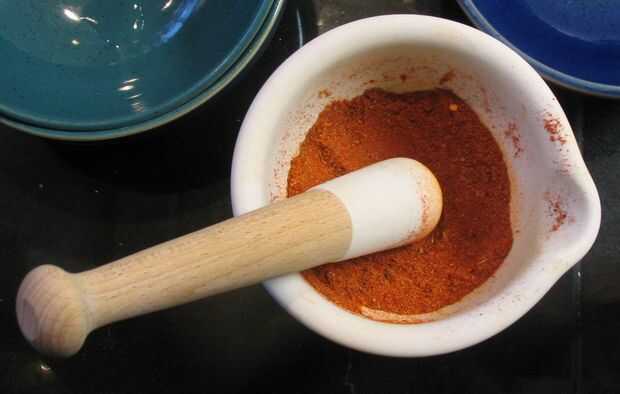 Aplastar y triturar todos las especias junto con un motor y una maja. Esto aumenta el área superficial de las especias y ayuda a liberar más sabor, pero no es necesario para el éxito. Triture las especias hasta que se parecen a la imagen.