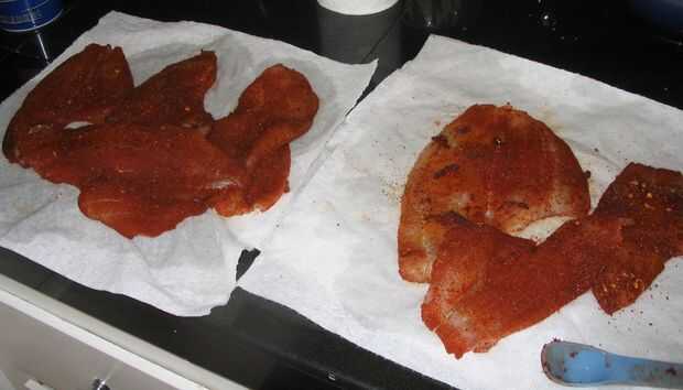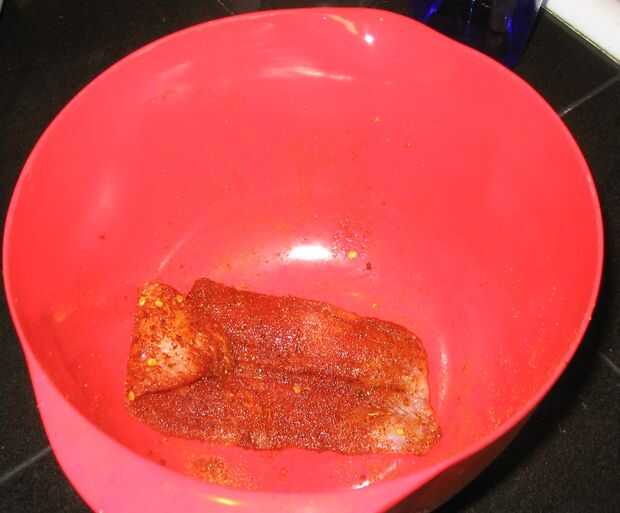 Poner las especias en un tazón y cubrir ambos lados de los filetes de pescado.