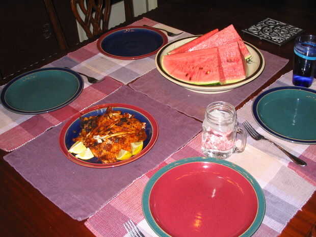 Sirva el pescado caliente con algo refrescante y fresco, como el watermellon.