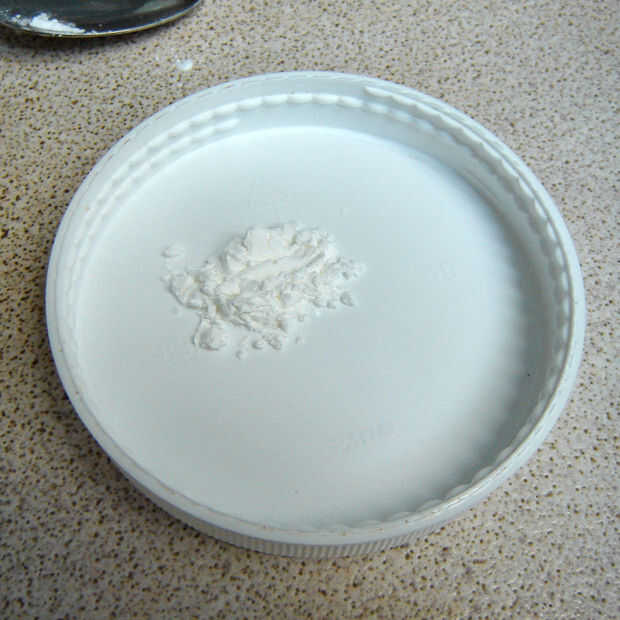 - En un pequeño plato de plástico miden aproximadamente 1/4 cucharadita de fécula de maíz
