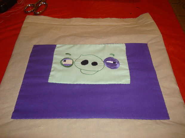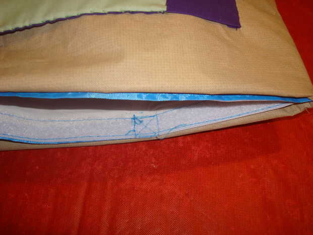 Coser el dobladillo en la parte superior de la abertura de la bolsa cerca de la tapa.