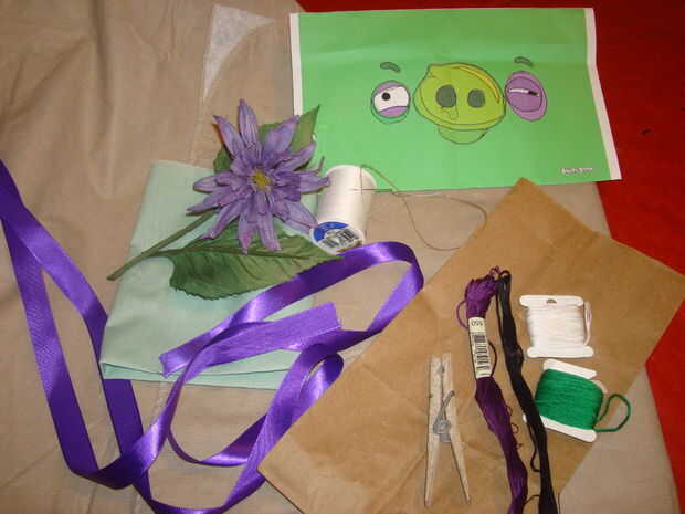 Cortar 2 asas de tela púrpura 22 "X 15", estos se utilizará para cubrir las manijas.