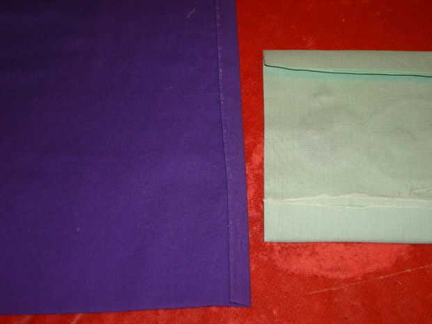 Puntada de la mano o la máquina de coser el tela verde diseño a la tela púrpura por los cuatro costados haciendo un 1/4" de la costura...