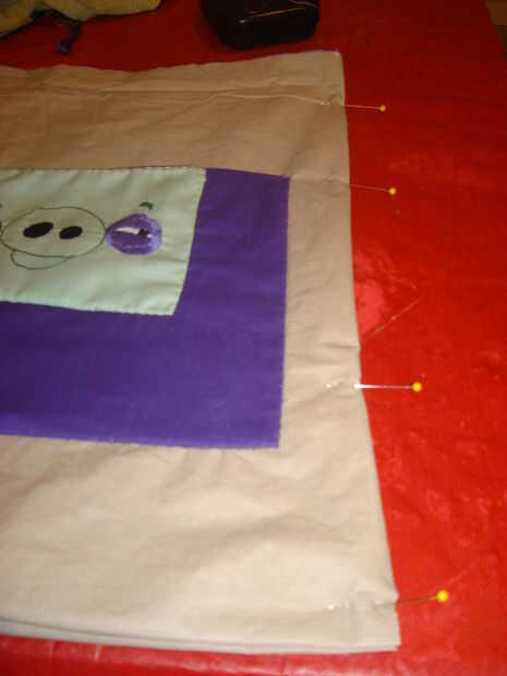 Gire a los lados debajo de 1/4" y perno de la parte delantera a la parte trasera en los lados; que vaya a coser después.