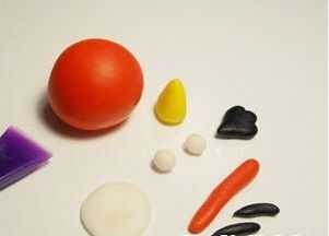 Utiliza arcilla blanca para hacer ojos, amarillo arcilla para barro de pico negro para hacer cola, cejas.