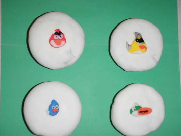 luego sólo tienes que copiar una imagen de Angry Birds tan cerca como usted puede usar el color fondants.