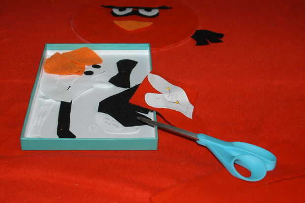 A continuación, asegúrese de que su lana de la manta es podar y cortar al tamaño que desee. Luego localizar el área donde va a coser en el Angry Bird - y marcar con tiza. Diseño todas las piezas se corta en ese punto, para poder hacer cualquier cambio o pasar a coser.