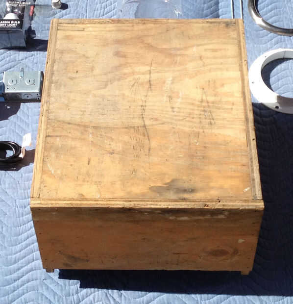 Además de más seguridad, una caja más grande me daría una oportunidad a todas las clases de cool diales y conmutadores en la parte delantera de la pila. Pude hicieron un cuadro de eso, pero realmente no tienen las herramientas necesarias para trabajar la madera. (O habilidades, para el caso). Afortunadamente, encontré una caja de madera que era absolutamente perfecta en una tienda llamada "Hábitat para la humanidad", por sólo $2. Es aproximadamente 17.5 "x 12" x 20", con la espalda abierta. Está hecho de madera contrachapada de 3/4".