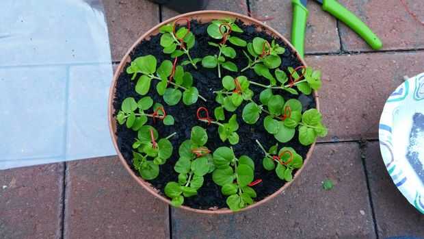 * Aunque la menta es una planta en posición vertical y, se propaga por estolones, por lo que este método realmente podría funcionar mejor con él que el método de albahaca por encima