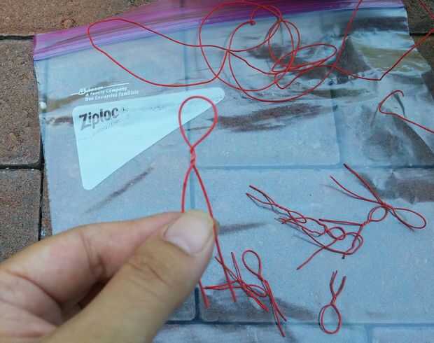 Clip del alambre en pulgadas de 2-3 pedazos y girar para hacer alfileres. Tienes que al menos uno de los pines por corte, o más si son más gruesas o más de los que estoy usando.