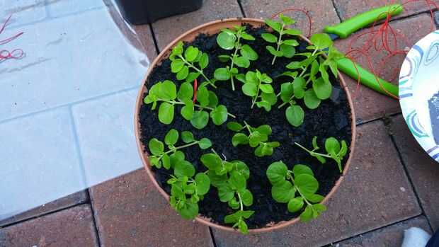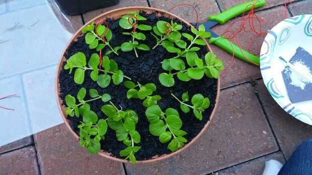 Prender su corte para que la planta tiene buen contacto con el medio para macetas, pero no tan fuertemente que Crimpea o daña el tallo. Este es un caso donde es mejor tener 2 o 3 pines libremente colocados de una sola firmemente había colocado uno.