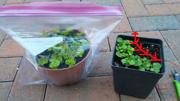 Una vez que tengas tus esquejes todo hechos para arriba, poner el recipiente de la planta en la bolsa superior de cierre relámpago o cubra ligeramente con envoltura de plástico para evitar que reseque mientras que forman nuevas raíces. Coloque sus recortes en algún lugar con luz brillante indirecta para una o dos semanas. Cuando usted puede ver algunos nuevos crecimientos, significa los esquejes han enraizado y pueden dejar fuera de la bolsa.