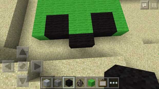 Paso 1: Construir boca arriba 1 cuadra de tierra 3 x 4 con bloque de carbón Paso 2: Construir ojos con carbón 2 x 2 y rellenar con cualquier tinte manchado te quiero